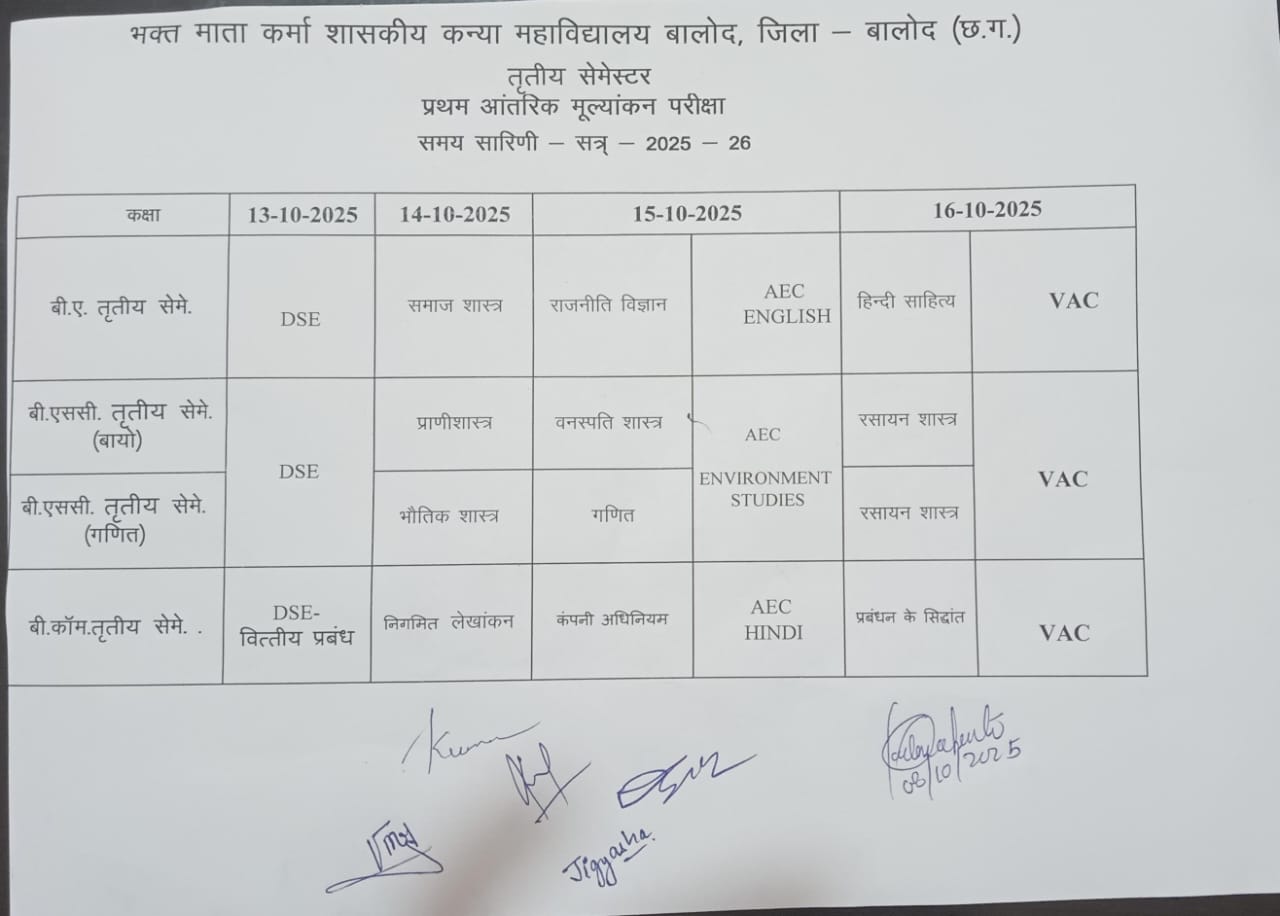 Time Table :- NEP Semester Exam (Dec.-Jan. 2025-26)