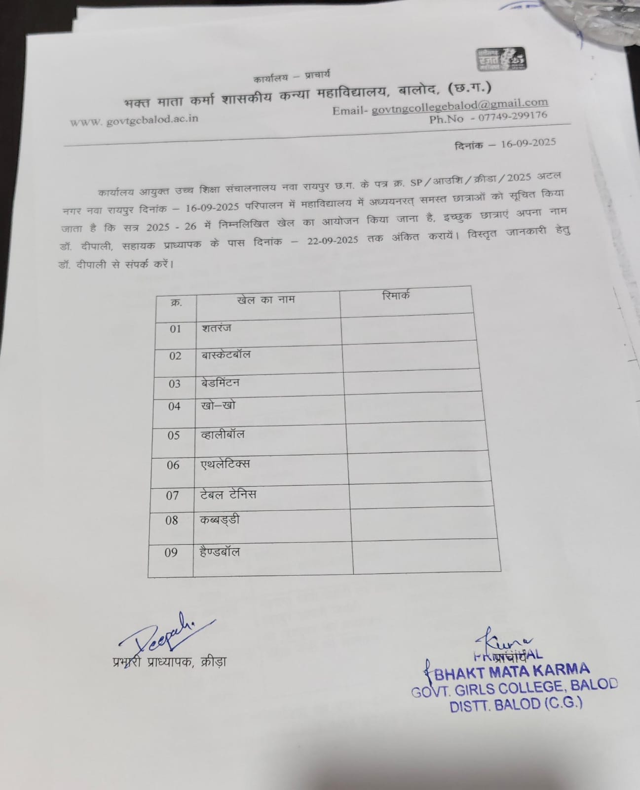 Welcome to Govt. Naveen Girls College, Balod (C.G.)
