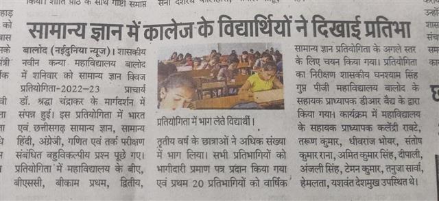 सामान्य ज्ञान में कॉलेज के विद्यार्थी ने दिखाई प्रतिभा